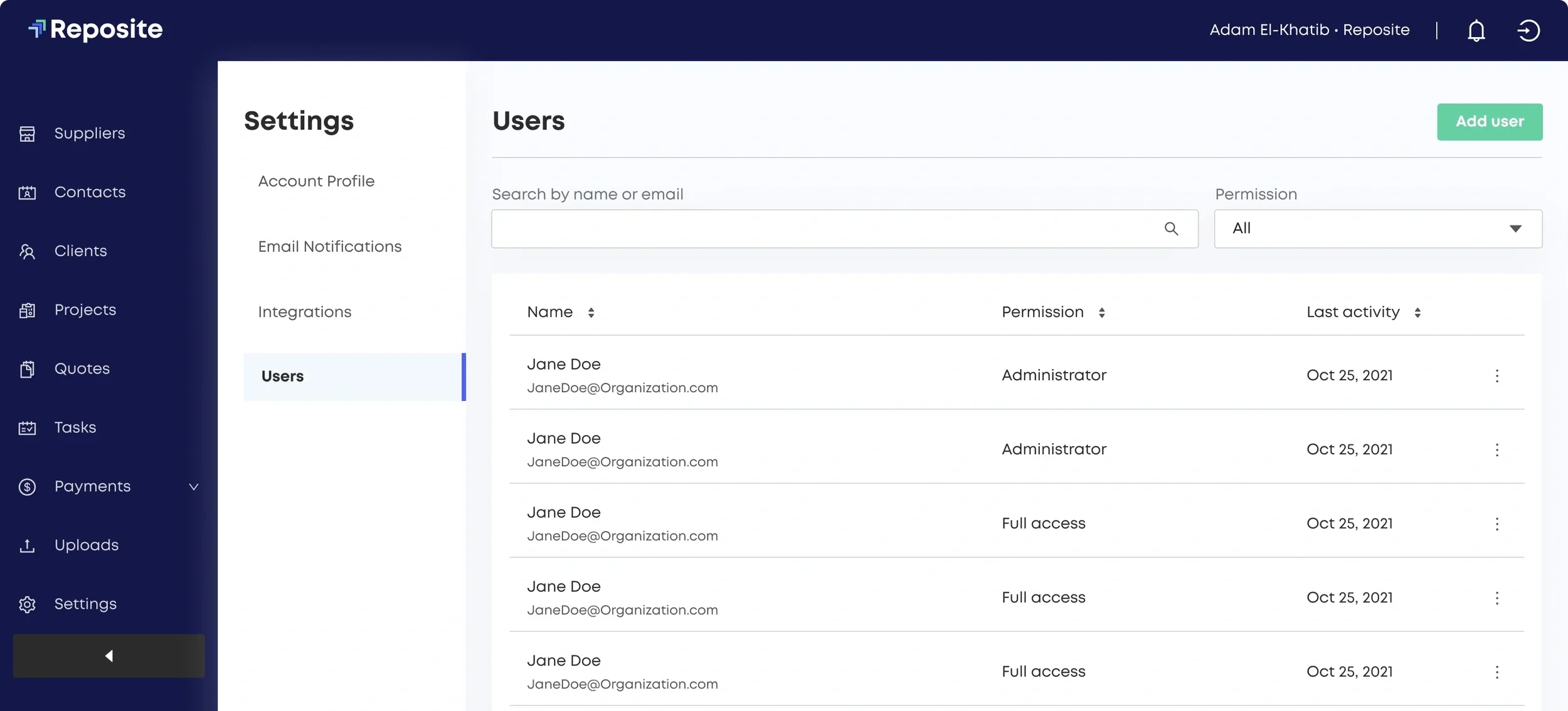 Reposite includes a convenient way for existing users to invite their co-workers to join their Reposite organization. This makes adding new team members quick and efficient, helping planners expand their teams and collaborate more seamlessly.
