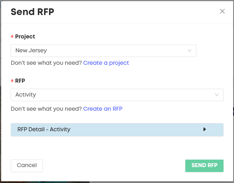 Click the "Send RFP" button to send the RFP directly to the chosen supplier.