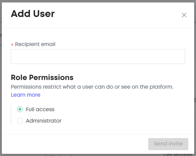 Type in your team member’s email and click "Send Invite."